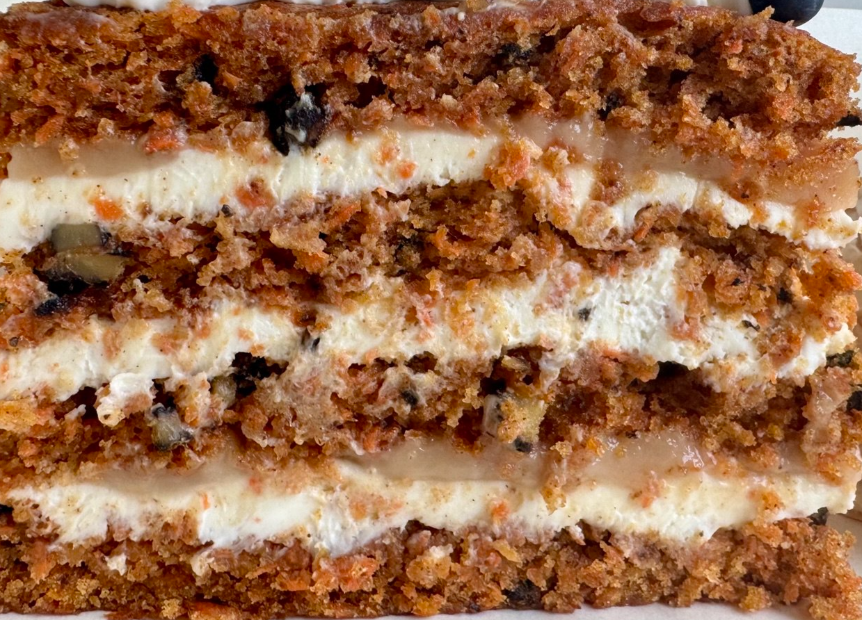 Кто никогда не пробовал морковный торт-тот многое упустил! Это невероятно сочный и ароматный вкус с мускатным орехом, корицей, апельсиновой цедрой, с нежным крем чизом, грецким орехом и домашней карамелью. Нет никакого привкуса моркови, зато сочность и пряность торта не оставит вас равнодушным. Торт тает во рту, а кусочки грецкого ореха добавляют торту хрустинку и изюминку!